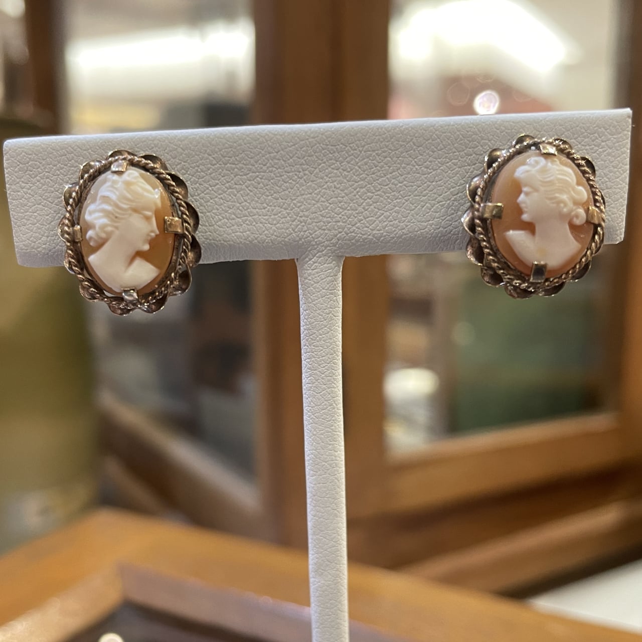 イギリスヴィンテージの、シェルカメオのイヤリング。