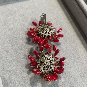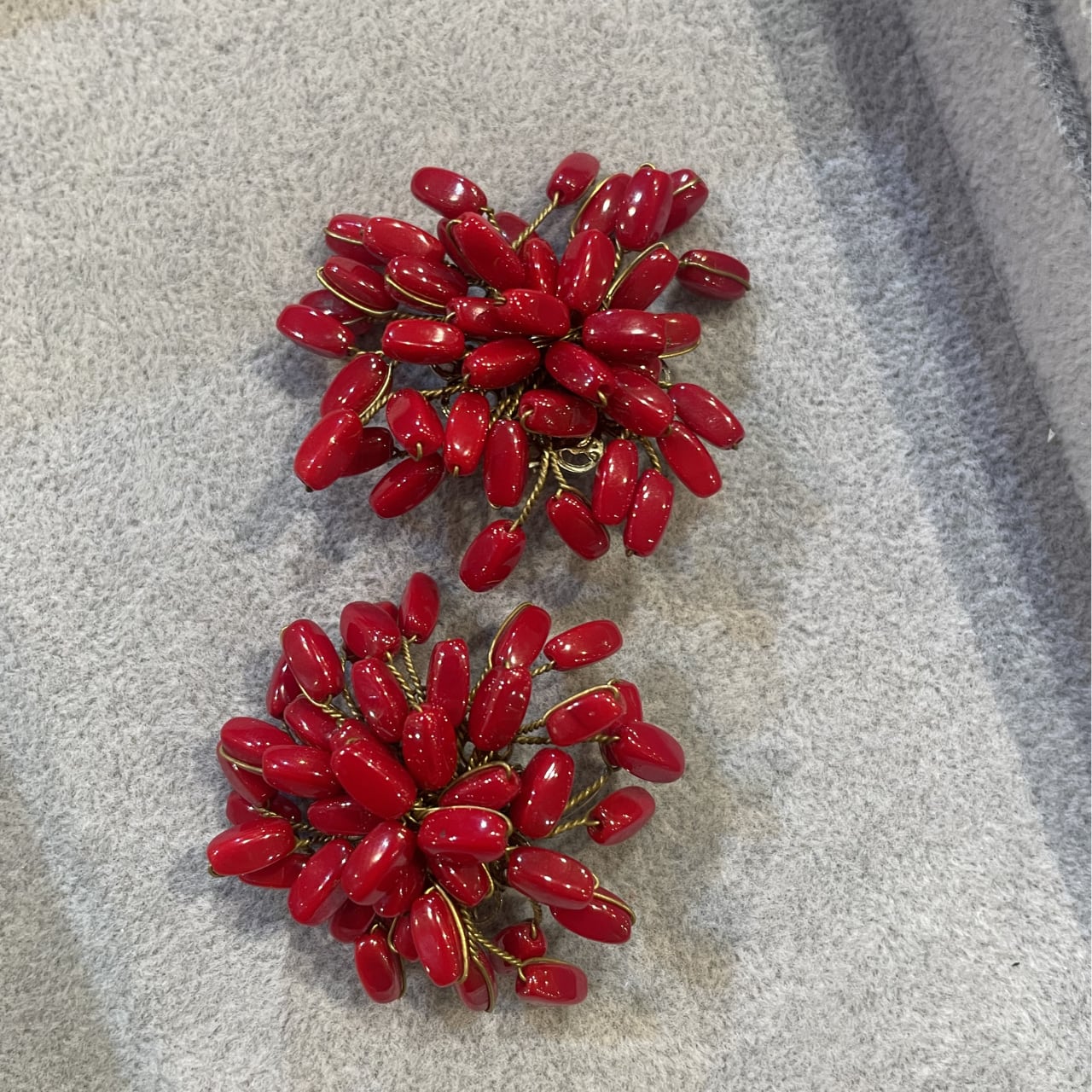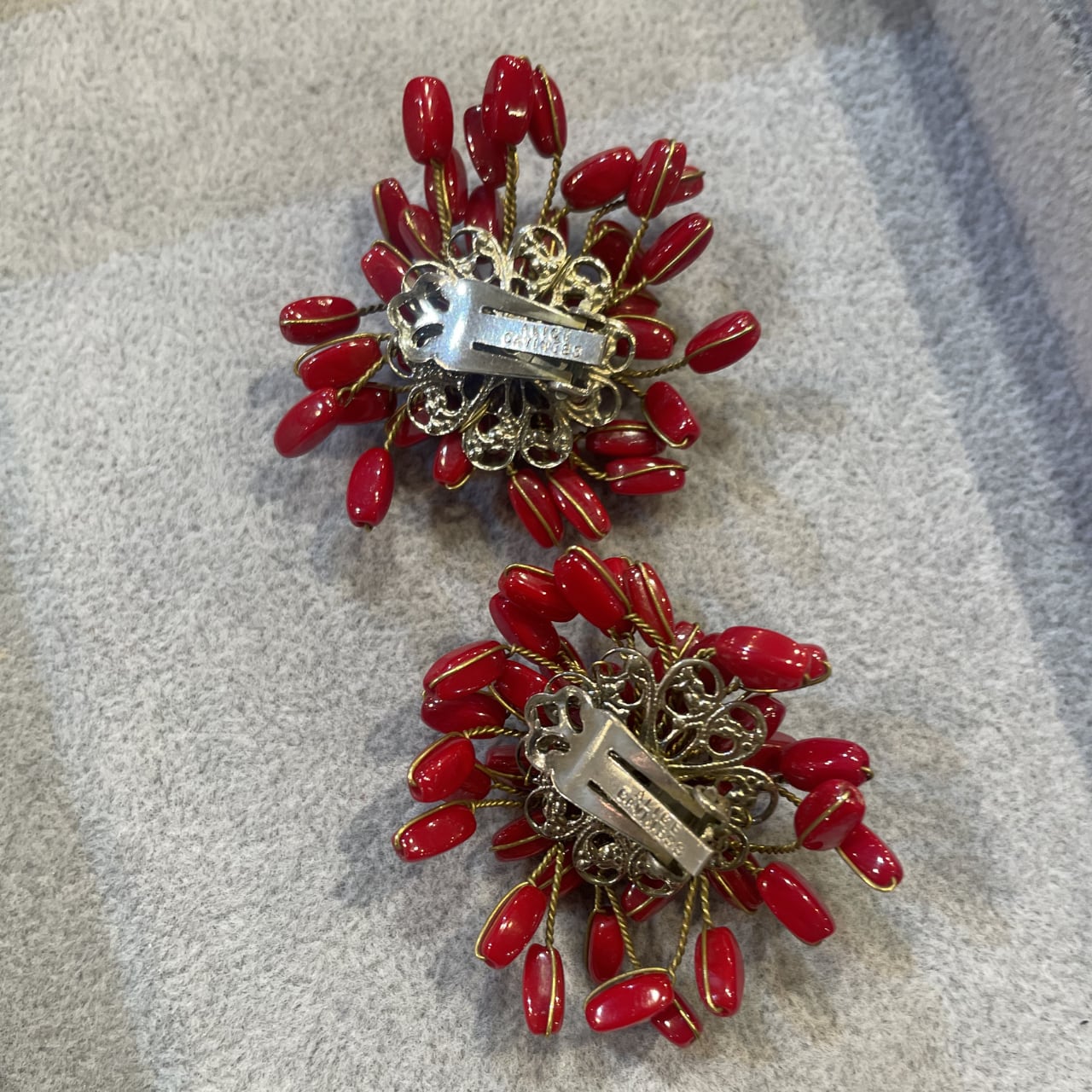 赤いビーズのヴィンテージイヤリング。軽くはない濃厚な赤で、きっとなかなか見つけられない赤。大人の女性に似合いそうなシックな雰囲気漂うイヤリング。イギリス買い付け品。
