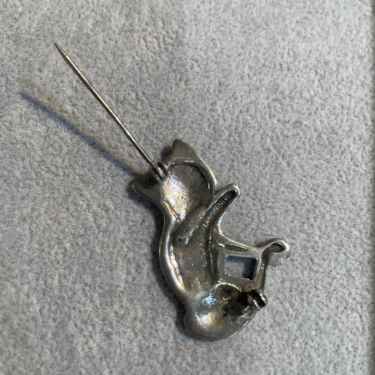 イギリス買い付け品、猫のブローチです。裏面にスターリングシルバー(Sterling Silver)