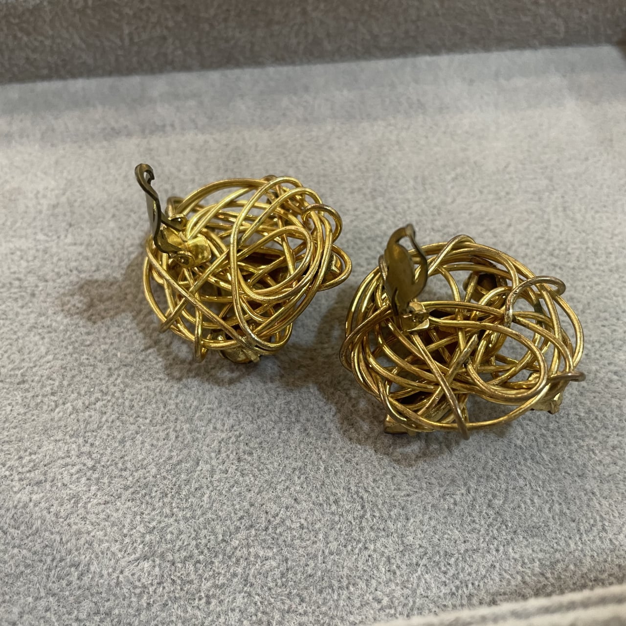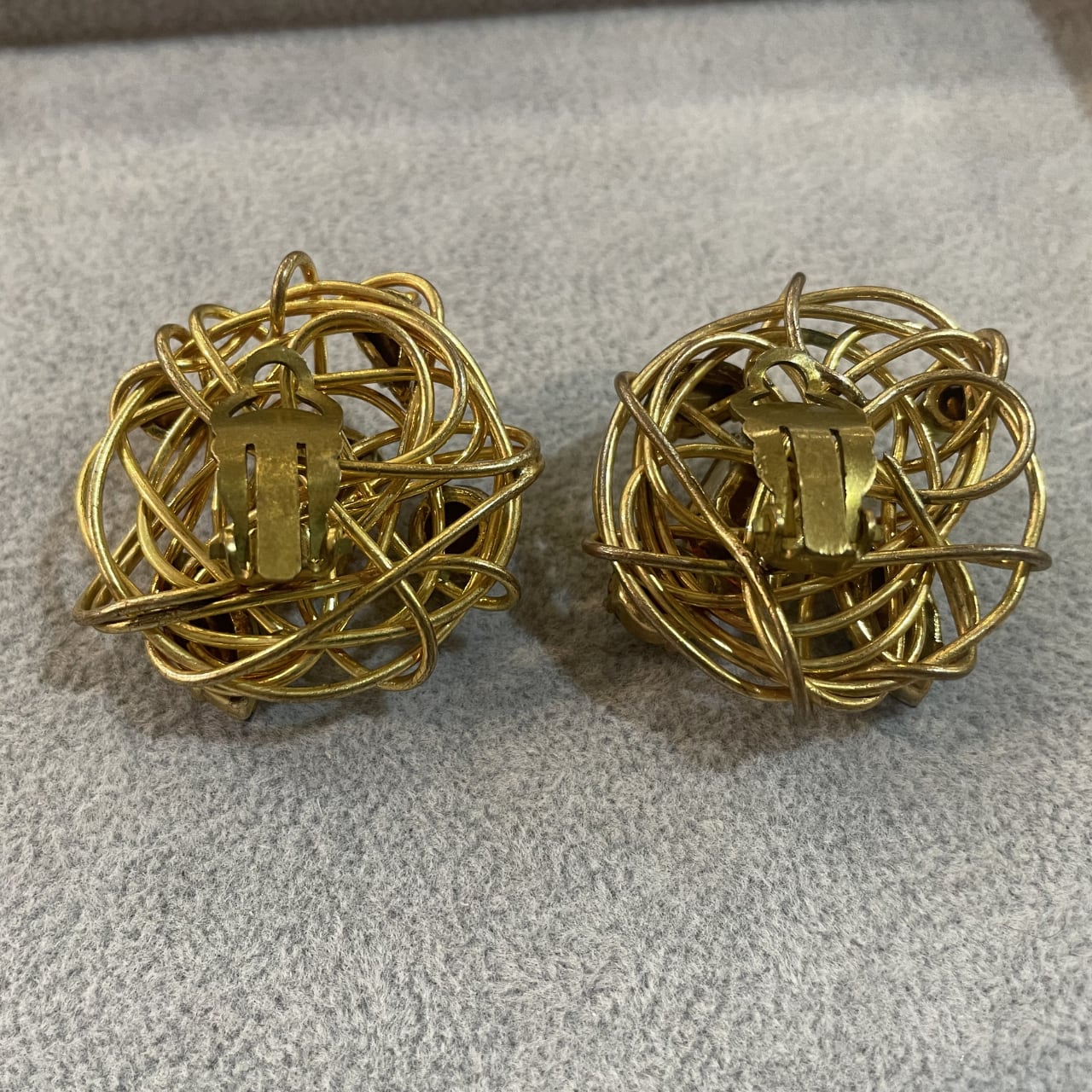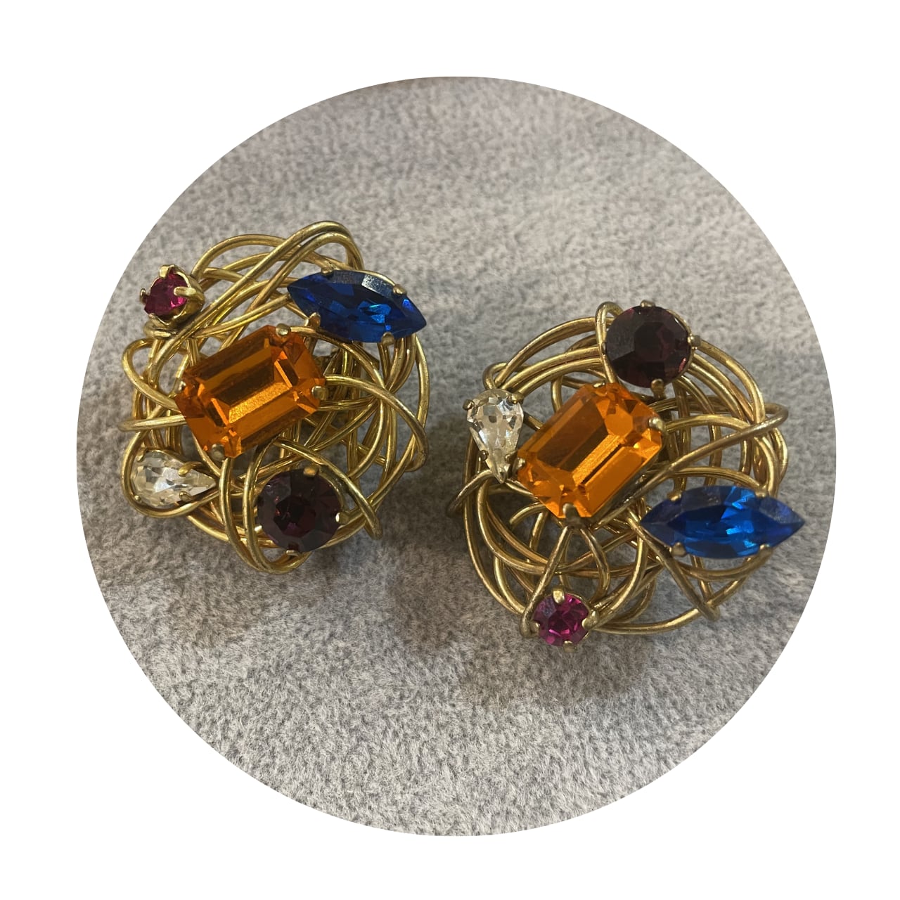 大ぶりのワイヤーデザイン、宝石のようなラインストーンのイヤリング。