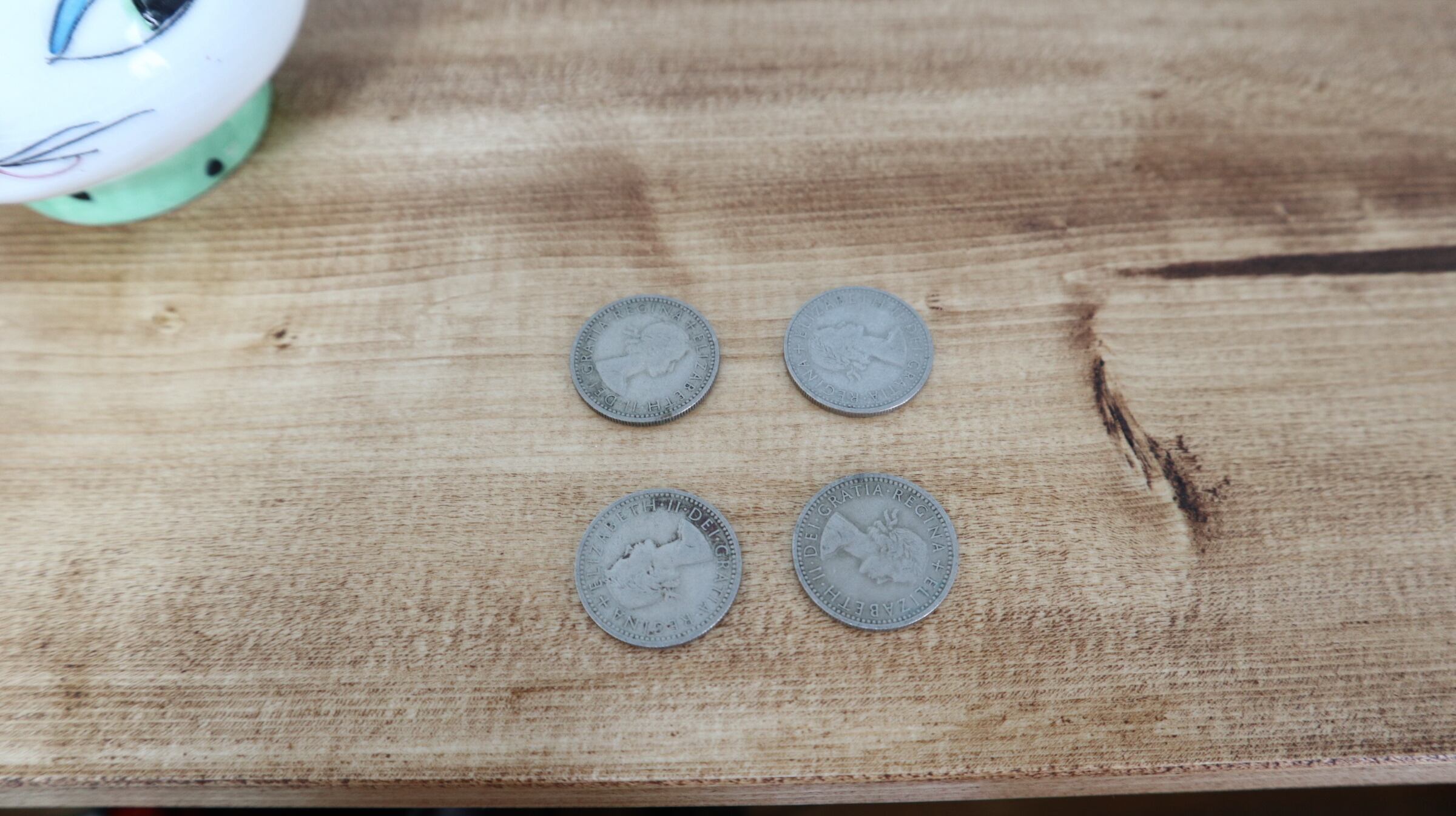 購入地はイギリスです。中にイギリスの6ペンス硬貨4枚が入っています。