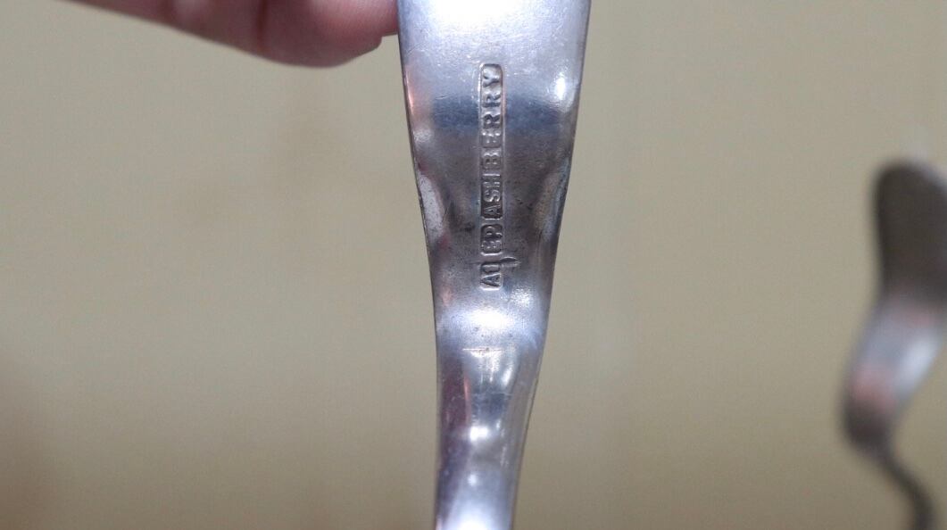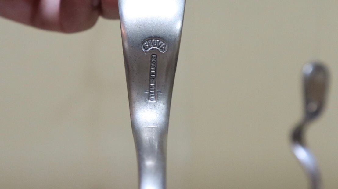 イギリスのヴィンテージ、シルバースプーンをドアベルに加工してある品物です。